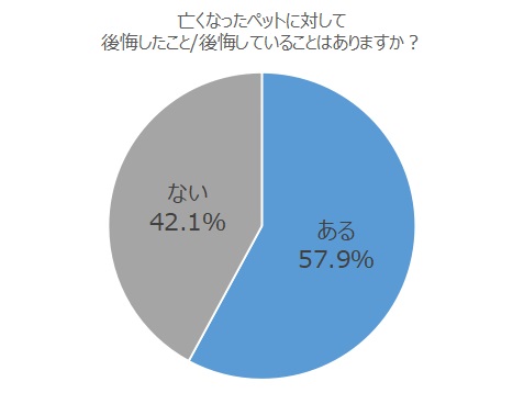 アイペット損害保険会社が実施したアンケートによると、ペットちゃんに対して「後悔していることがある」と回答した人は全体の57.9%でした。